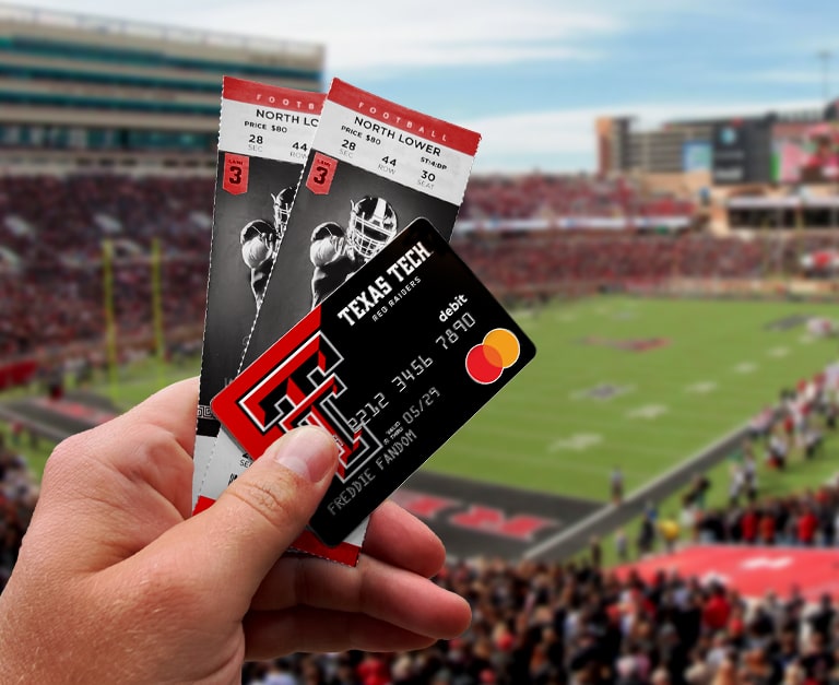 Get your Texas Tech Fancard and register up to 5 sub-cards for friends and family! Keep track of budgeting, provide allowances, and receive text* alerts for every transaction. Are you the ultimate Texas Tech fan? Now you can prove it with your Fancard!