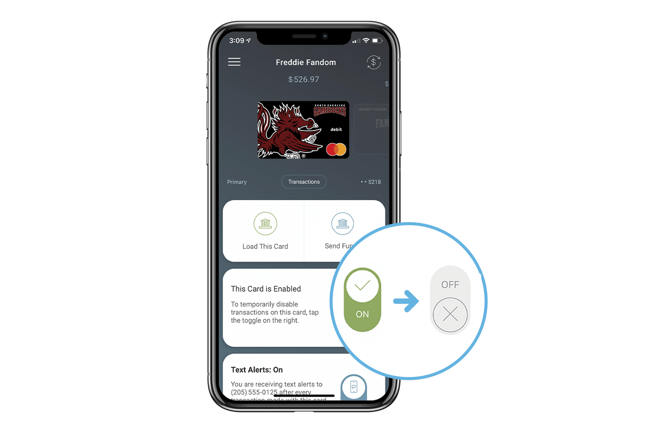 Can help protect your funds and prevent fraud by disabling your Fancard