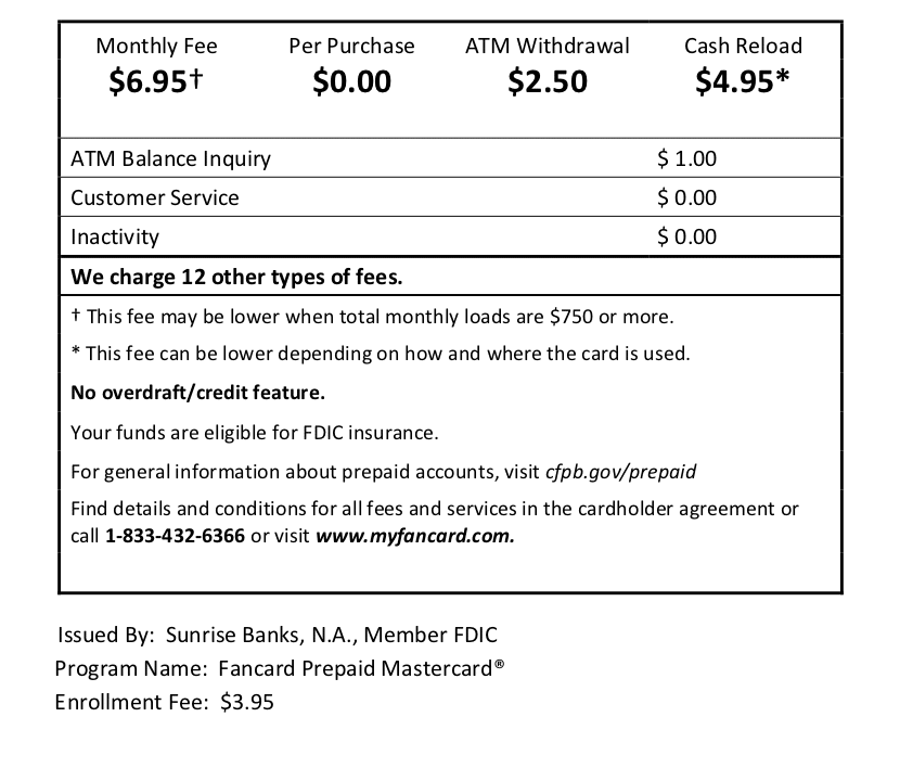 The table below is a short list of fees that apply to the Fancard Prepaid Mastercard®.