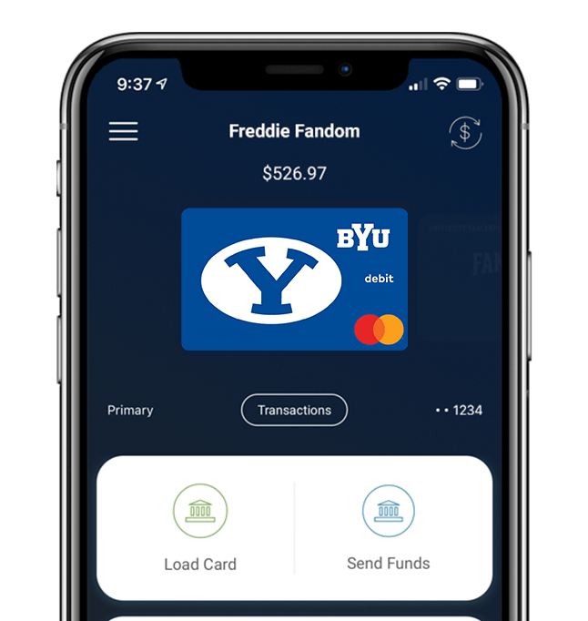 Get your BYU Cougars Fancard and register up to 5 sub-cards for friends and family! Keep track of budgeting, provide allowances, and receive text* alerts for each and every transaction. Are you the ultimate BYU fan? Now you can prove it with your Fancard!