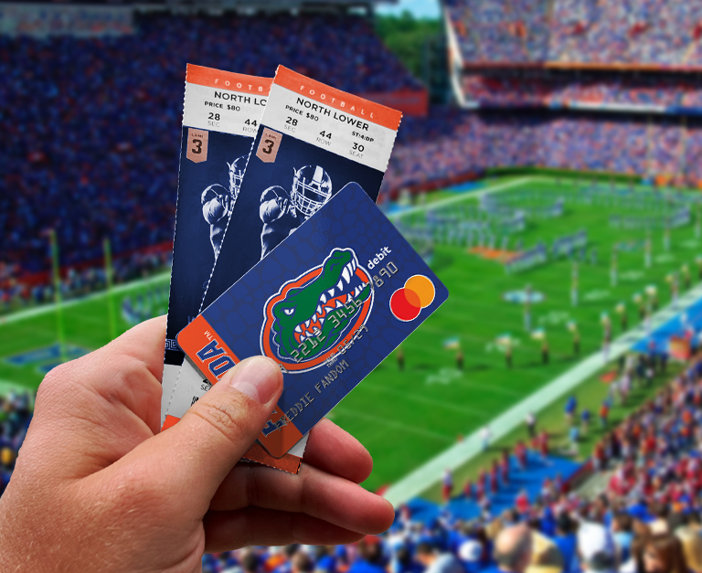 Get your Florida Gators Fancard and register up to 5 sub-cards for friends and family! Keep track of budgeting, provide allowances, and receive text* alerts for each and every transaction. Are you the ultimate Florida fan? Now you can prove it with your Fancard!