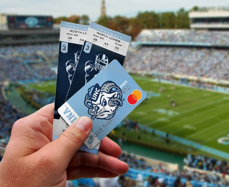 Get your North Carolina Fancard and issue up to 5 sub-cards for friends and family! Keep track of budgeting, provide allowances, and receive text* alerts for each and every transaction. Are you the ultimate UNC fan? Now you can prove it with your Fancard!